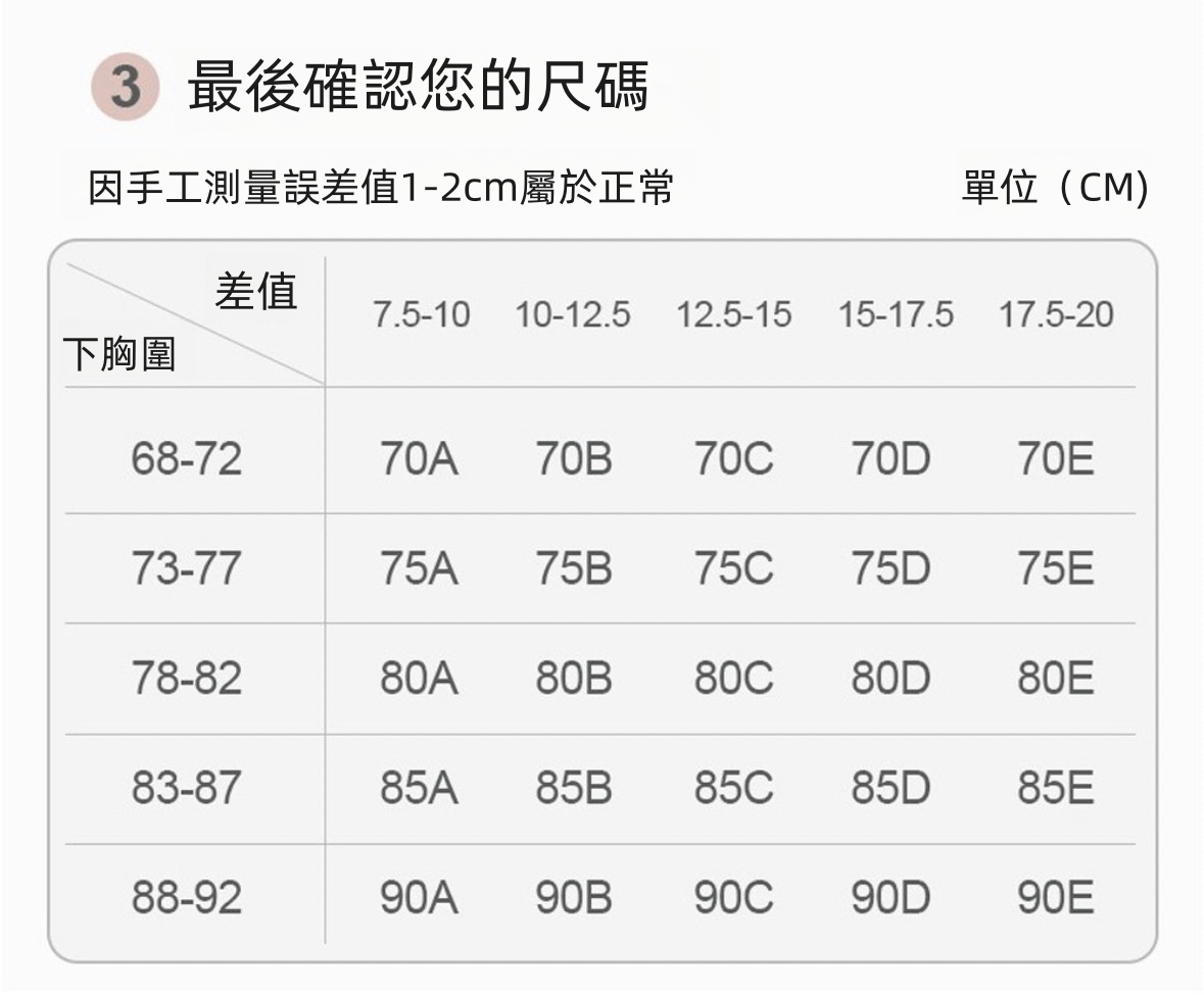 內衣穿著實際以個人身型體重有不同!